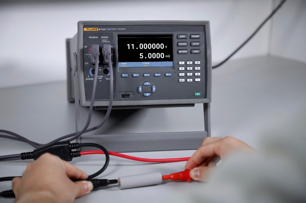 福祿克電池測試儀的帶載能力是傳統儀表的數倍,可以確保即使在采用長測試線,測試大尺寸電芯的情況下,仍然可以用3mΩ和30mΩ量程來獲得穩定的讀數。