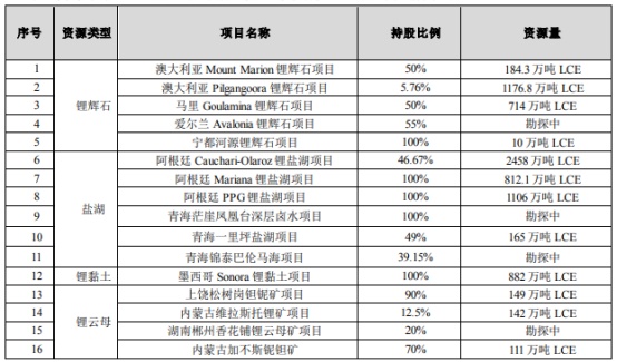 截至目前,贛鋒鋰業在全球范圍內直接或間接擁有權益的上游鋰資源情況如下: