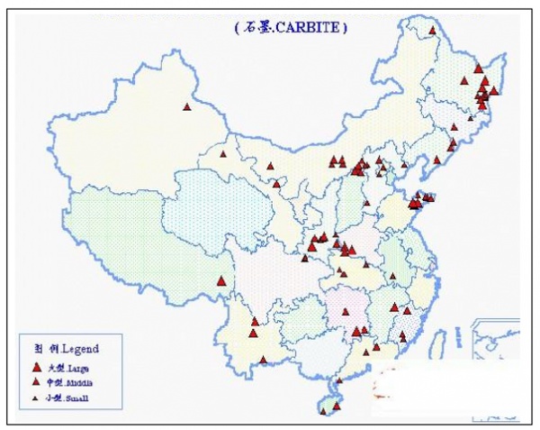我國天然石墨資源主要分布在河南、山東、四川、湖南、內蒙古和黑龍江等地。這幾個地區的已探明資源儲量占全國的91%左右。