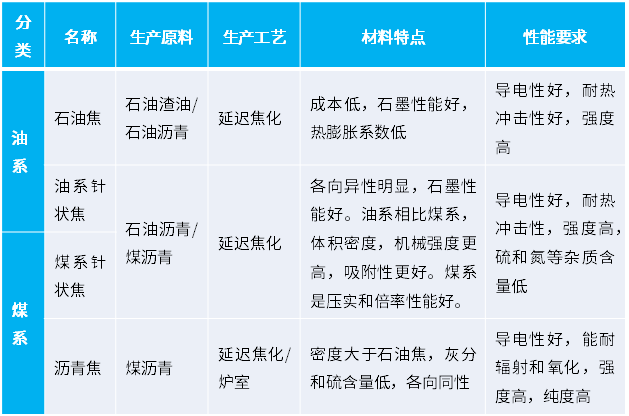 人造石墨的焦原料可分為油系焦和煤系焦。目前,人造石墨焦原料用量較大的是低硫石油焦。人造石墨負極生產對石油焦和針狀焦的品質要求,要比其他炭素行業要求更嚴格。