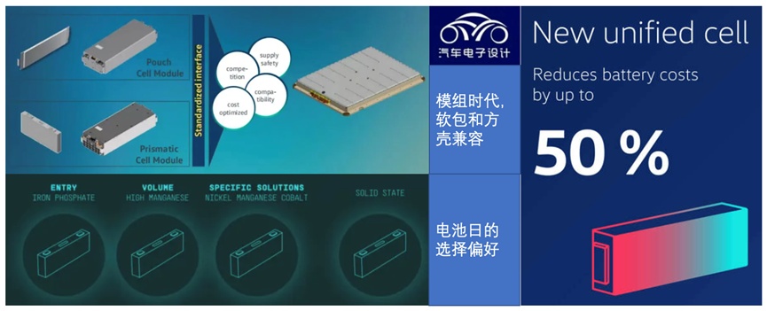 因此在電池日上,看到的還是大眾選擇了MEB 590的方殼電芯,到了這次出來,我們看到了雙端出的方殼電芯。