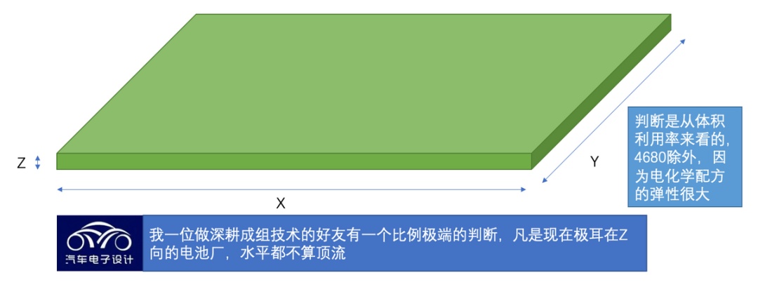 從設計思路上來看,這個核心邏輯是有一個比例極端的判斷,凡是現在極耳在Z向的電池廠,水平都不算頂流,當然可能排除4680,因為在電化學體系和標準化方面,這里可以做到非常好。
