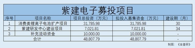 此番上市,紫建電子擬募資金4.88億元分別投入2個項目和補充流動資金。