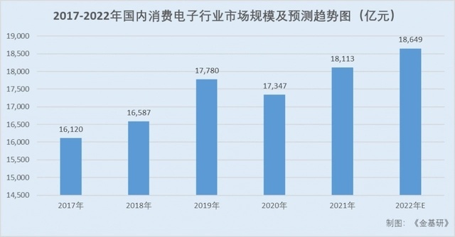 據Statista和中商產業研究院整理數據,2017年國內消費電子市場規模為16,120億元,2021年增至18,113億元,市場規模龐大。隨著國內疫情形勢好轉以及市場需求的恢復,預計2022年國內消費電子市場規模將達18,649億元,同比增長3%。