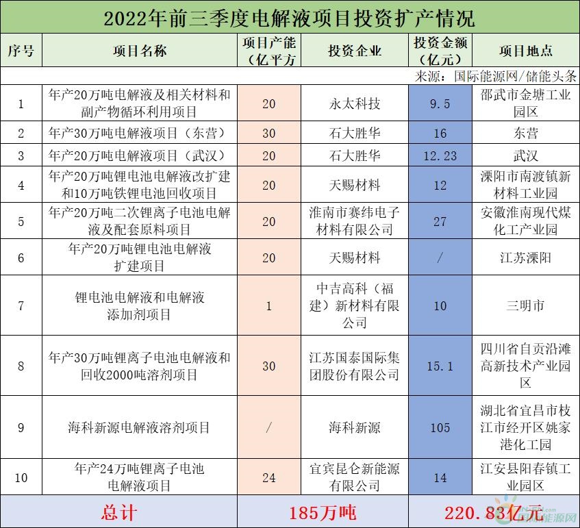 03電解液項(xiàng)目投資額已超200億元