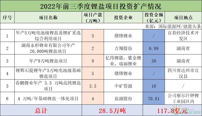 據(jù)國(guó)際能源網(wǎng)/儲(chǔ)能頭條(微信號(hào):chuneng365)統(tǒng)計(jì),贛鋒鋰業(yè)、吉翔股份、億緯鋰能、紫金鋰業(yè)、瑞福鋰業(yè)等企業(yè)規(guī)劃了或者簽署了28.5萬(wàn)噸的鋰鹽項(xiàng)目。