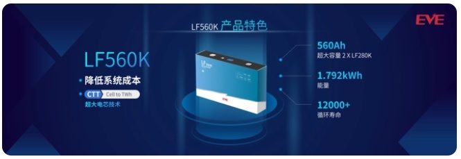 當前,儲能行業(yè)快速發(fā)展,站在GWh上升至TWh的時間拐點,疊加對儲能經(jīng)濟性的迫切需求,儲能電池需具備高安全性和高經(jīng)濟性。億緯鋰能從市場、客戶和產(chǎn)品技術出發(fā),LF560K電池基于CTT技術,可降低系統(tǒng)總成本,具有560Ah超大容量,單只電池可儲存1.792kWh能量,循環(huán)壽命超過12000次,滿足儲能市場高經(jīng)濟性的需求。