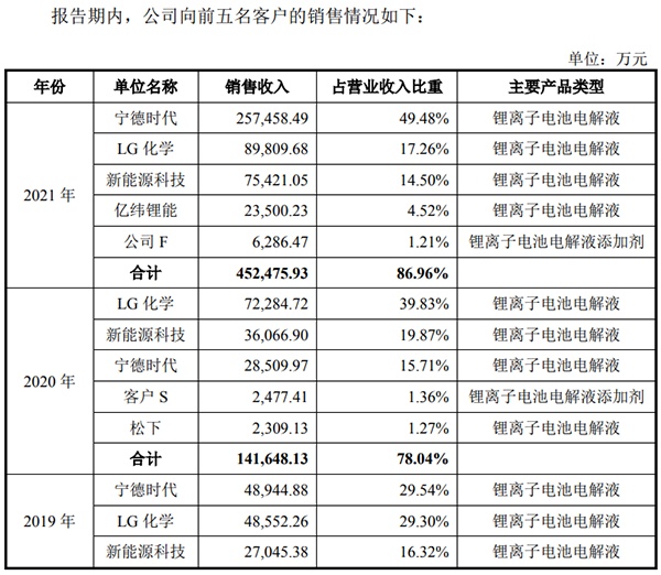 客戶方面,目前包括寧德時(shí)代、LG新能源、ATL、億緯鋰能和松下電池都是其客戶。其中,2021年寧德時(shí)代采購量占其銷售收入比重近50%,是其第一大客戶。