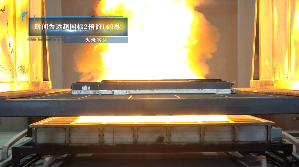 動力電池因熱穩定性不佳從而引發電池自燃是目前新能源車面臨的一個重要風險,也是用戶極為關心的問題。此次火燒實驗中,蜂巢能源短刀電池采用兩倍國標的140s高溫炙烤和火燒對電池包外部持續加熱,短刀電池滿分完成挑戰,沒有發生起火、爆炸等事故,為消費者帶來足夠的逃生時間。