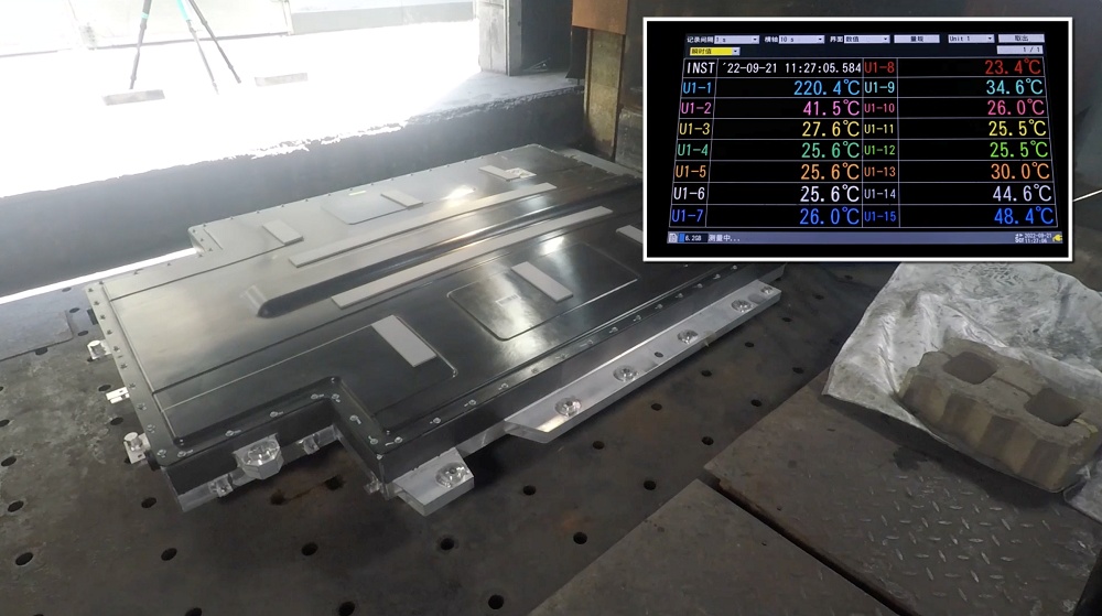 動力電池發生熱失控時,是否能夠有效進行熱阻隔,同時電池包能夠快速泄壓,是考驗電池安全的重要標準。本次熱失控實驗中,短刀電池在電芯熱失控是能夠有效進行熱阻隔,避免熱量傳遞至其他電芯,從熱失控開始到靜止結束,未發生起火和爆炸事故。