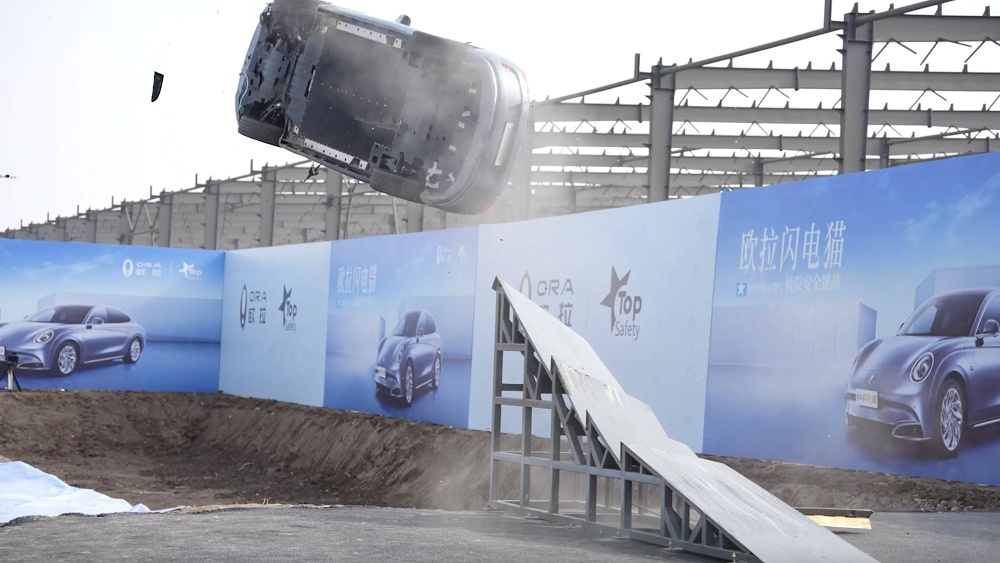 國內首次電動車高速螺旋翻滾測試安全直線拉滿