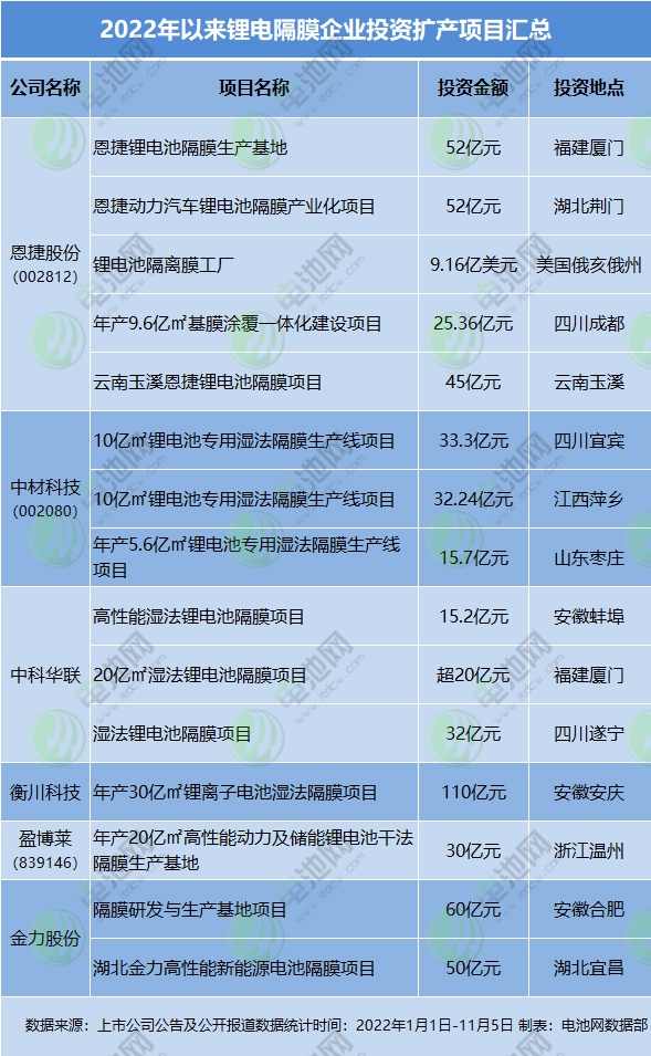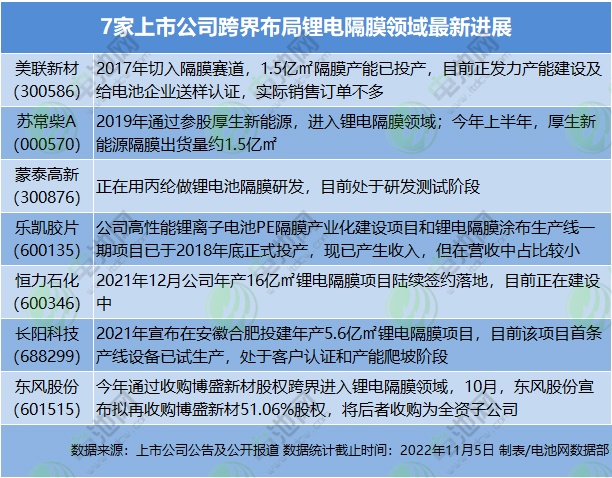 除了上述新投建的項(xiàng)目,今年以來,部分上市公司跨界投資鋰電隔膜領(lǐng)域也傳出新動(dòng)態(tài)。
