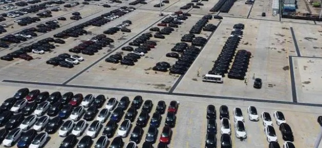 資料圖:剛下生產線的國產特斯拉正一輛輛有序停在工廠內。 殷立勤 攝