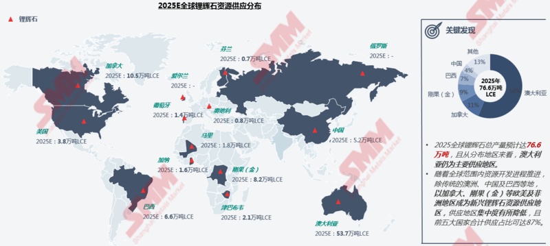2025E全球鋰輝石資源供應(yīng)分布情況
