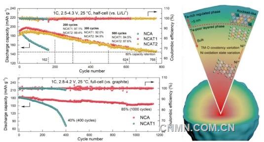 國家動(dòng)力電池創(chuàng)新中心創(chuàng)新團(tuán)隊(duì)牢記以技術(shù)創(chuàng)新引領(lǐng)行業(yè)高質(zhì)量發(fā)展使命,保持深耕細(xì)作、求真務(wù)實(shí)科研作風(fēng),圍繞行業(yè)共性技術(shù)需求,不斷提升技術(shù)服務(wù)能力,服務(wù)新能源汽車行業(yè)應(yīng)用需求。針對(duì)高比能動(dòng)力電池在安全、壽命、成本等方面存在的問題,創(chuàng)新團(tuán)隊(duì)通過多維度調(diào)研分析,找準(zhǔn)共性問題,開展電池檢測驗(yàn)證、機(jī)理解析,確定關(guān)鍵技術(shù)因素。經(jīng)過多輪次研討,從電池關(guān)鍵材料著手,精細(xì)設(shè)計(jì)核殼梯度正極材料結(jié)構(gòu),引入電子態(tài)摻雜技術(shù),開發(fā)表面改性新方法。經(jīng)過一年多的技術(shù)攻關(guān),從材料設(shè)計(jì)、實(shí)驗(yàn)研究驗(yàn)證到工程化技術(shù)開發(fā),批量試制成功性能優(yōu)異的高鎳正極材料。所開發(fā)材料兼顧了穩(wěn)定表面結(jié)構(gòu)、良好電荷傳遞性能,具備優(yōu)異的熱穩(wěn)定性和循環(huán)穩(wěn)定性,實(shí)現(xiàn)低成本工程化,行業(yè)專家鑒定達(dá)到國際先進(jìn)水平。部分研究成果以論文形式發(fā)表于能源領(lǐng)域國際頂級(jí)學(xué)術(shù)期刊Small(IF=15.153),題目為“Structureand Charge Regulation Strategy Enabling Superior Cyclability for Ni-RichLayered Cathode Materials”。