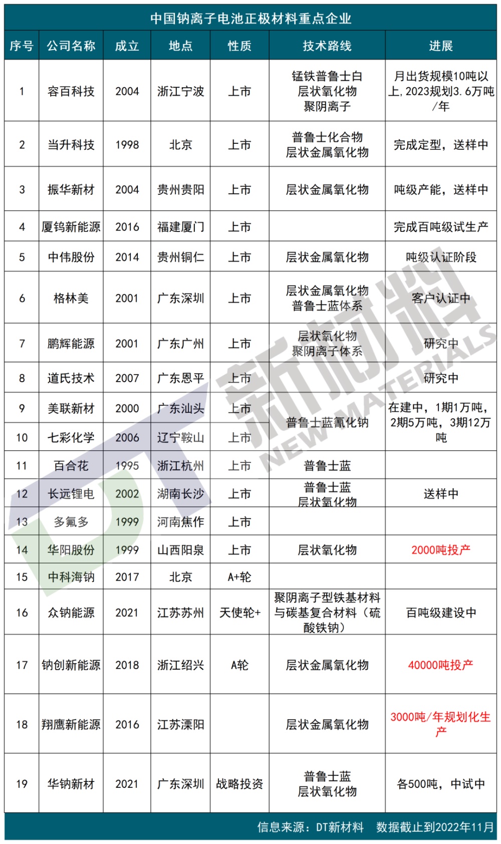 其中上市公司占較大部分,但初創(chuàng)公司進(jìn)展更快,其中中科海鈉、華陽(yáng)股份、佰思格、鈉創(chuàng)新能源和江蘇翔鷹等企業(yè)已經(jīng)實(shí)現(xiàn)規(guī)?;a(chǎn),走在產(chǎn)業(yè)最前線。