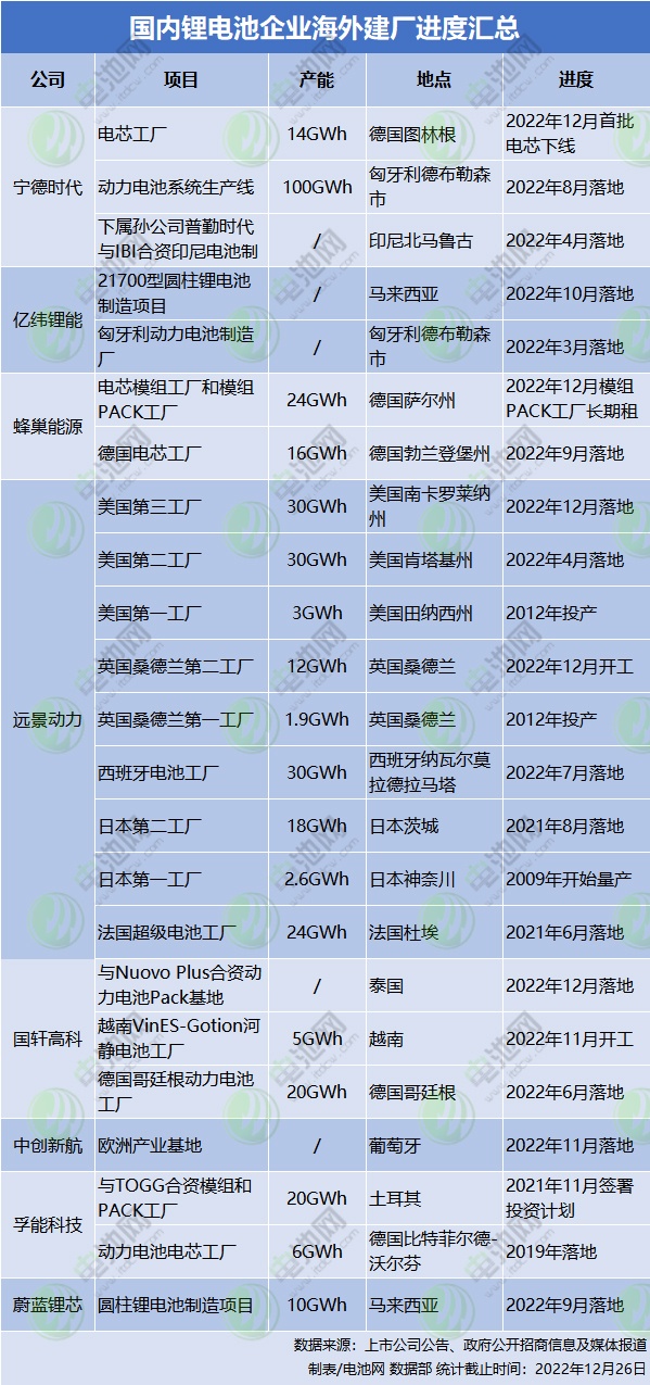國(guó)內(nèi)鋰電池企業(yè)海外建廠進(jìn)度匯總