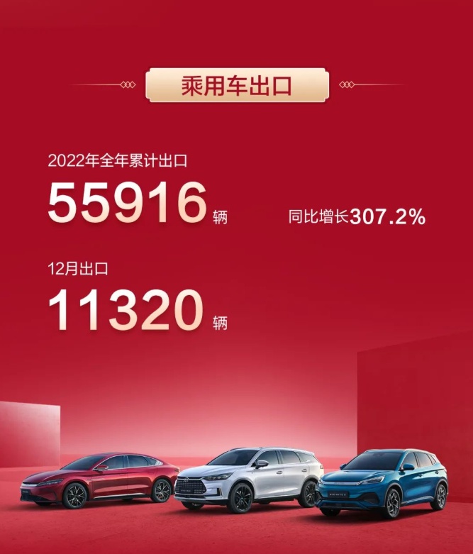 另據比亞迪汽車官方微信號2023年1月2日晚間消息,2022年比亞迪汽車銷售1868546輛,去年同比增長152.5%;12月銷售235197輛,同比增長137.3%。