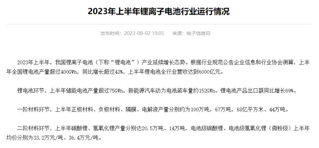 工信部:上半年全國鋰電池產量超過400GWh 同比增長超過43%