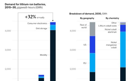 麥肯錫公司最新報告顯示,預計到2030年全球汽車電池需求將增長30%左右,增速近每年4500GWh,電池價值鏈預計在2020年至2030年間增長多達10倍,達到年收入最高4100億美元。到2030年,預計40%的鋰離子電池需求將來自中國。注:圖片非商業用途,存在侵權告知刪除!...