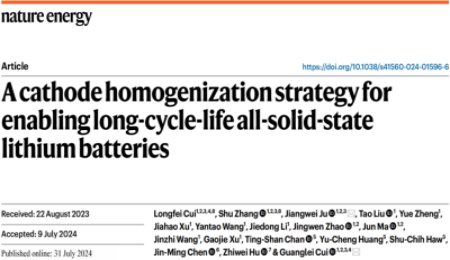 近日,中國科學院青島生物能源與過程研究所崔光磊研究員、鞠江偉副研究員等開創(chuàng)性設(shè)計出均質(zhì)化正極材料,顛覆了全固態(tài)鋰電池復(fù)合正極的范式,從根本上解決了與正極非均勻性相關(guān)的瓶頸,制備出兼具高能量密度和長循環(huán)壽命的全固態(tài)鋰電池。相關(guān)研究成果以“A cathode homogenization strateg...